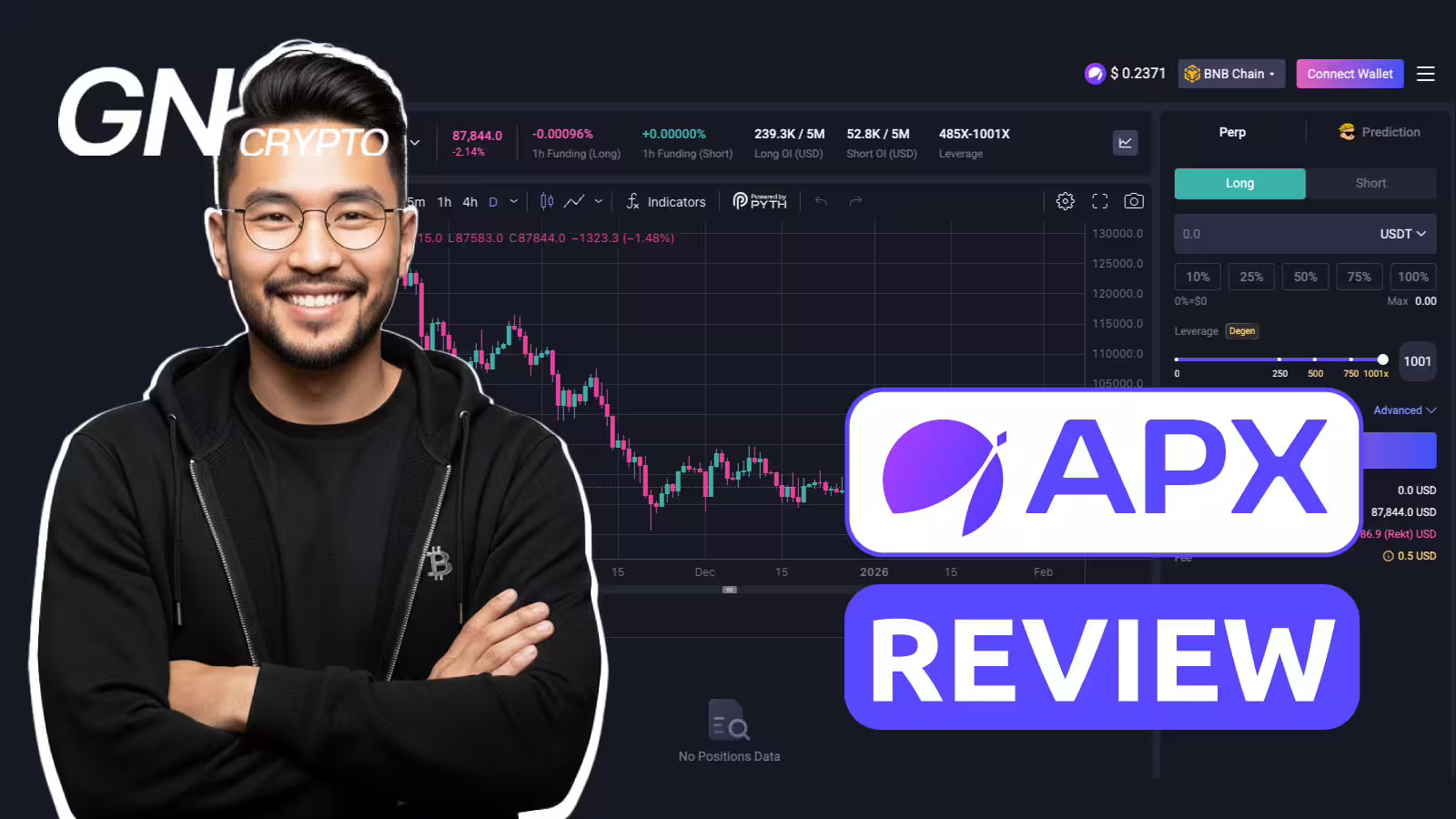 We tested ApolloX using GNcrypto’s weighted, category-based evaluation model with real capital deployed in live perpetual futures markets. We connected a non-custodial wallet, deposited $200 in USDC, and executed 30 live trades across the most active perpetual contracts over 6 trading days (Jan 14–20, 2026).