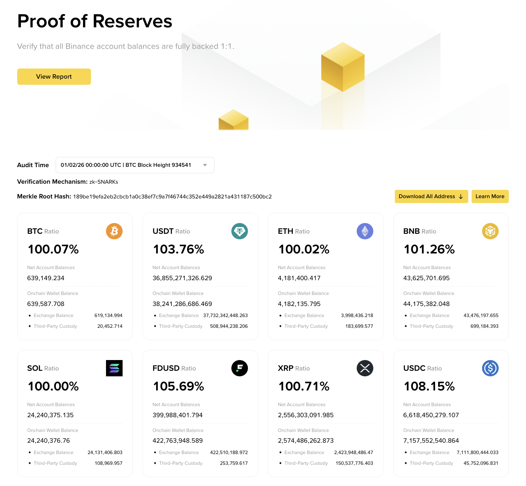 The exchange publishes Proof of Reserves and states that user assets are held 1:1 with no leverage. For extreme cases, it maintains the SAFU insurance fund, estimated at around $1bn in equivalent value.
