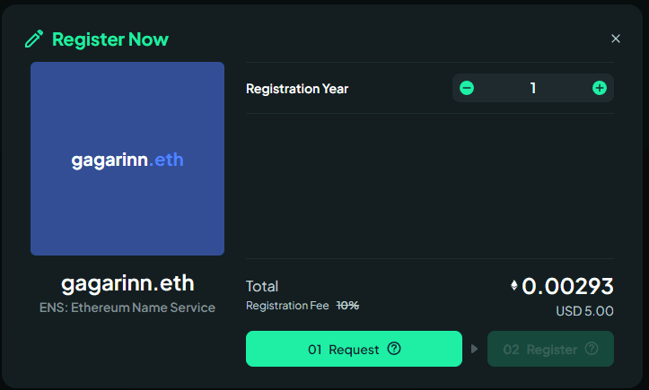 Once you've found the perfect domain, you can register it immediately. Upon registration, the domain will appear in your personal account, and you'll receive an NFT that confirms your ownership of the domain.