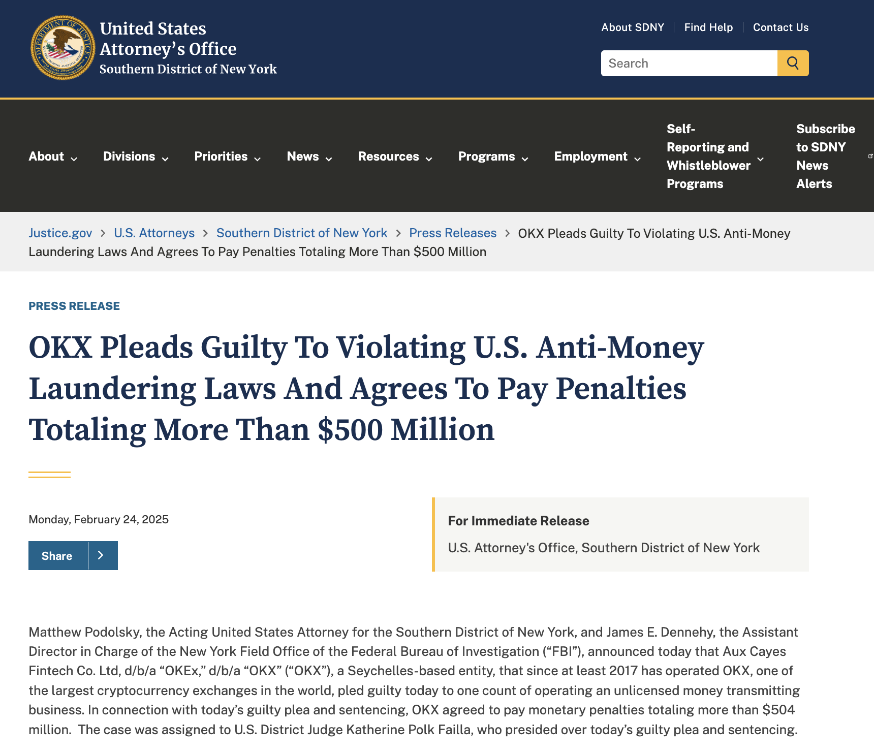In 2025, OKX’s operator admitted guilt in a US AML case and agreed to pay more than $500m, along with accepting external monitoring through 2027. Regulatory risks around the platform remain, and they also affect P2P trading.