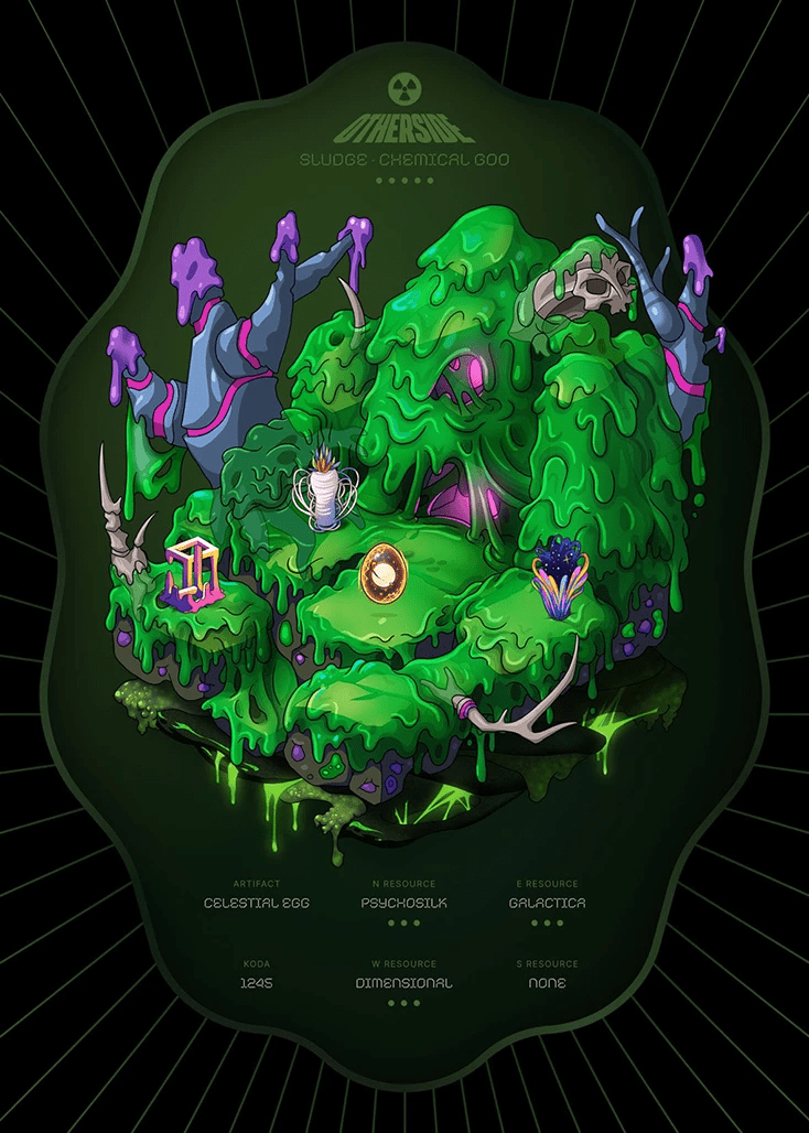 The collection of individual Otherdeed makes up the Otherside metaverse, which is part of a galaxy consisting of five distinct worlds – Biogenic Swamp, Chemical Goo, Rainbow Atmos, Cosmic Dream, and Infinite Expanse. Each unique NFT land option is divided among these worlds.