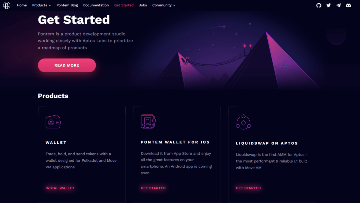 The largest dApps incubator on the Aptos blockchain. The platform has its own wallet and Liquidswap with several large tokens and stablecoins, as well as liquidity farming. Pontem also offers users template packages for developing smart contracts on Aptos and creating their own applications.