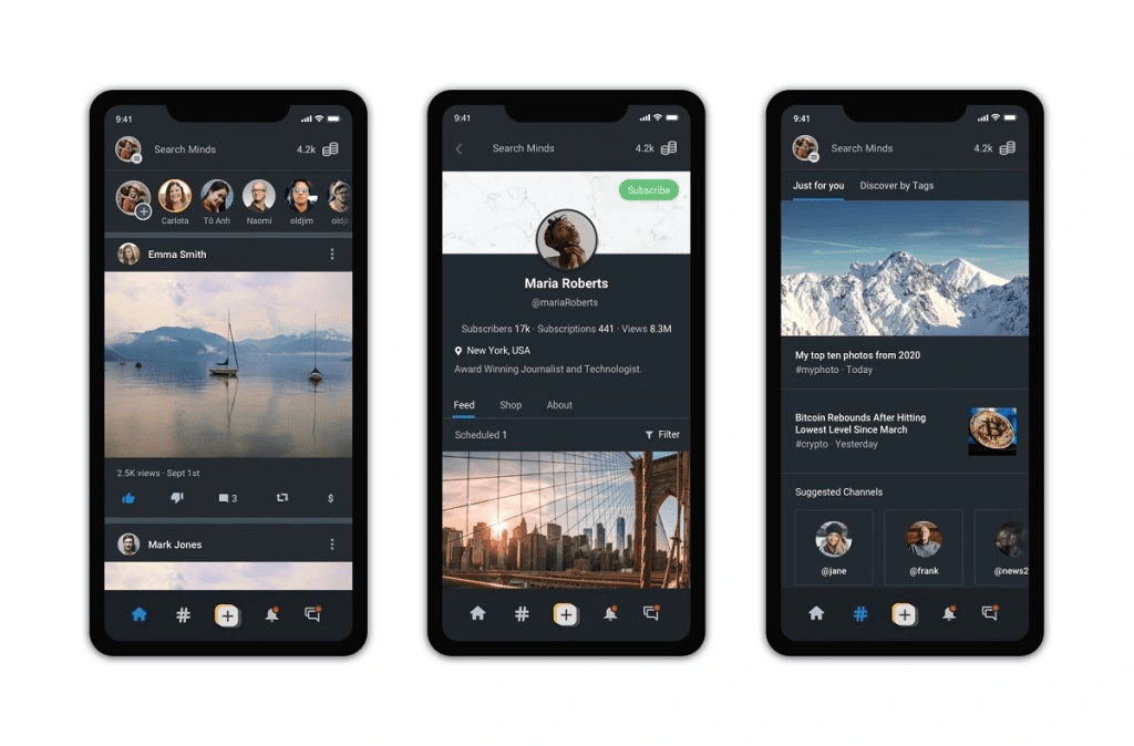The decentralized social network is similar to the well-known and influential social media pioneer Facebook, but positions itself as anti-Facebook. This platform has its own MINDS token. Users are rewarded for writing interesting posts and they get help with social media management and other activities that benefit Minds.