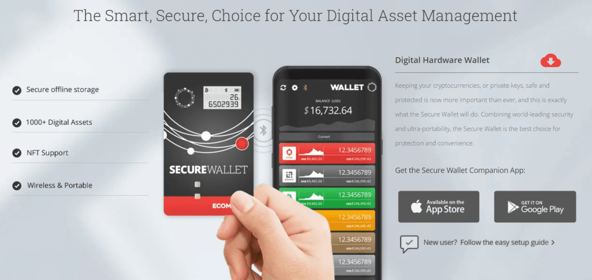 SECURE WALLET is a wireless hardware crypto wallet for storing private keys and digital assets. It is designed to be impenetrable to malicious cyber attacks as it never gets connected to the internet directly and that’s why it’s called "cold"
