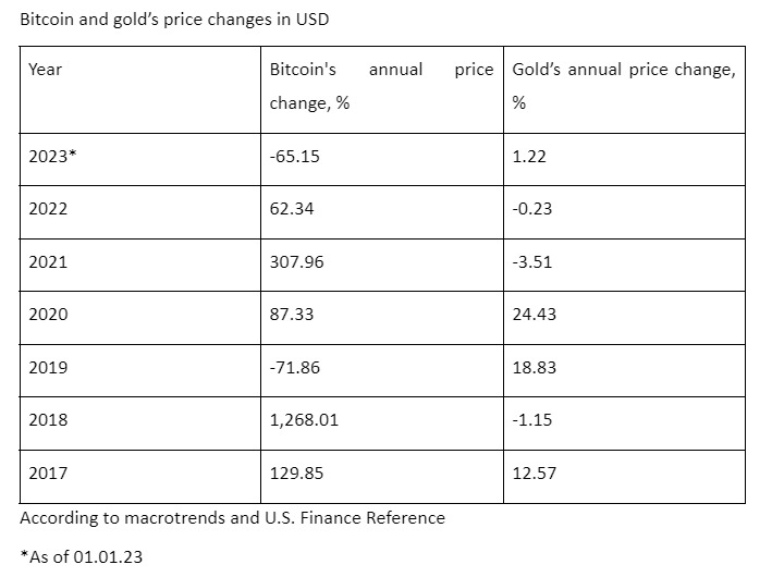 They saw bitcoin’s annual profits between 2011 and 2021 that were far greater than those of gold. Bitcoin has provided investors with returns of more than 17,000% over the course of its existence. This amount is vastly greater than the annual yield of gold. For instance, gold generated only a 1.5% annual return during the same decade.
