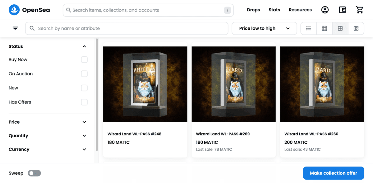 1. The WL-Pass role can be earned by purchasing the whitelist (WL). It provides access not just to minting and future WIZ airdrops, but also to certain advantages in the future. WL can be purchased on OpenSea, with prices starting at 180 MATIC (or $210 at the time of writing).