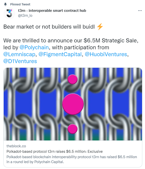 С момента появления, t3rn считался неотъемлемой составляющей сети Polkadot. Новый раунд финансирования и участие в программе Web3 Foundation Builders Program расширит это сотрудничество и предоставит доступ к новым перспективам с помощью усовершенствования технологии.