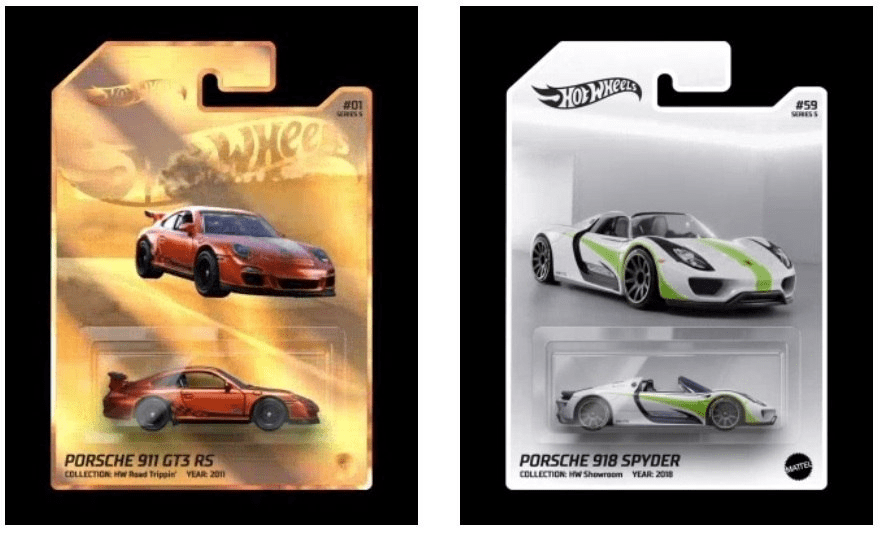 В каждом наборе представлено 7 виртуальных коллекционных предметов. Дальнейшая арифметика выглядит достаточно затейливо. В каждой упаковке будет по 4 среднестатистических NFT с изображением Hot Wheels и еще 2 изображения, которые в компании характеризуют как необычные. А дальше — как повезет. Последний, седьмой NFT набора может отказаться редким или суперредким. Счастливчикам может достаться также ультраредкий и эксклюзивный токен. Обладатели NFT трех последних категорий редкости имеют право получить физическую копию своего цифрового авто. В компании анонсируют, что это будут McLaren F1, '17 Pagani Huayra Roadster, Aston Martin Vulcan, '55 Chevy® Panel или Porsche 911 GT3 RS.