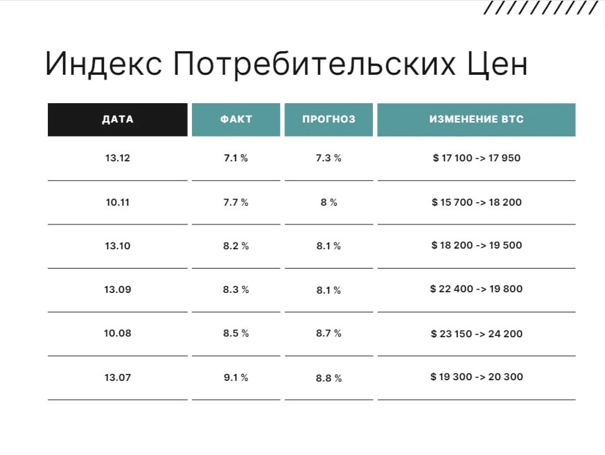 Реакция BTC на ежемесячные отчёты по индексу потребительских цен