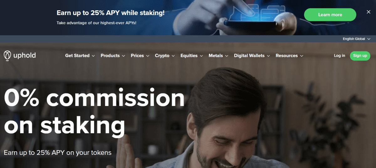 Одна з головних особливостей біржі — торгівля без попередньої конвертації, яка називається “Anything for Anything”. Наприклад, Bitcoin можна обміняти безпосередньо на золото, і так з будь-якими активами. Крім цього, Uphold підтримує стейкінг таких криптовалют, як Ethereum, Tezos (XTZ), Solana (SOL) та інших. Річна процентна прибутковість (APY) становить до 25%. Однак високий прибуток передбачено лише для ризикованих активів. Наприклад, на стейкінгу Ethereum можна отримати лише до 7%.