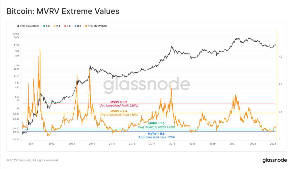 ? Мінімуми циклу зазвичай формуються, якщо MVRV нижче 0,8.