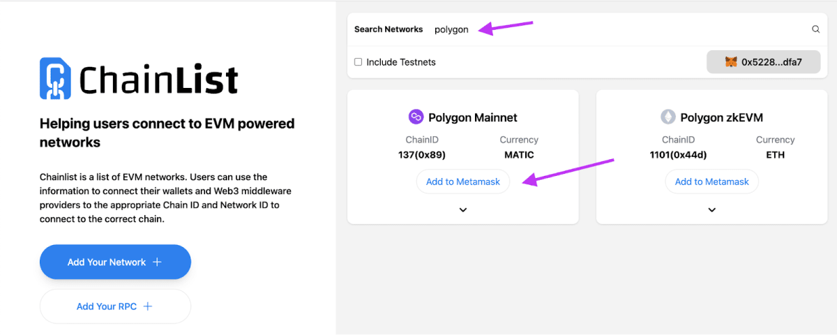Вибір мережі Polygon. Джерело: zkbridge.com