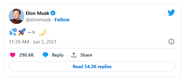 Історичний максимум токена спостерігався в травні 2021 року. Актив за 5 днів злетів до 0,2726 долара, збільшившись на 1200%. Після цього спостерігалося ще кілька стрибків, не без допомоги Ілона Маска, який у своєму твіті відправив Cum-ракету на Місяць.