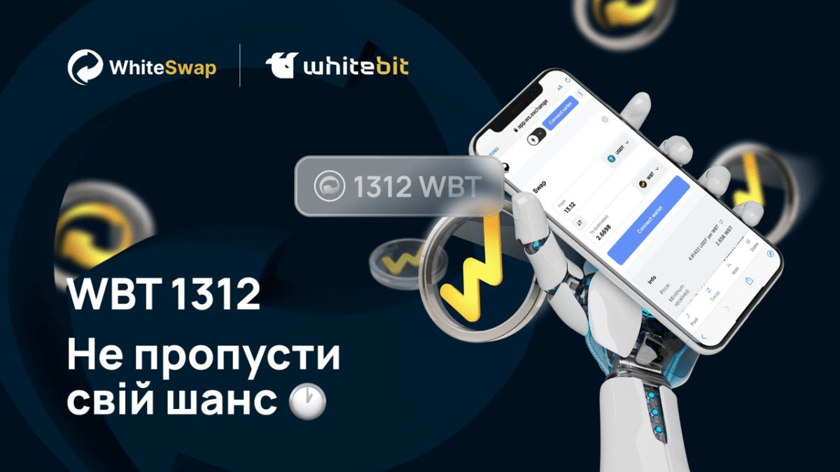 WhiteBIT запускає передріздвяну свопакцію, пов’язану з магією чисел. Черговий розіграш токенів WBT буде мати прямий зв’язок з числом 1312. Щоб взяти участь у цій акції та отримати баунті у WBT, необхідно зробити усього два кроки.