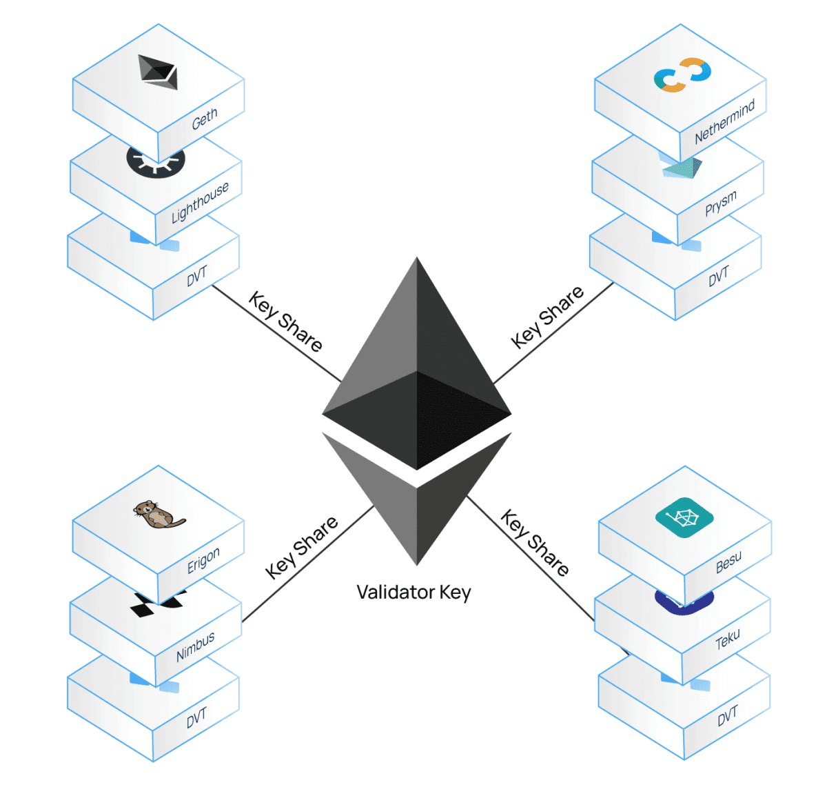 1. Самостійний стейкінг: технологія розподіленого валідатора дає можливість заможним людям використовувати стороннє обладнання та запускати більше нод із меншими витратами. При цьому ключ має повну автономність, а кількість можливих штрафів за бездіяльність скорочується.